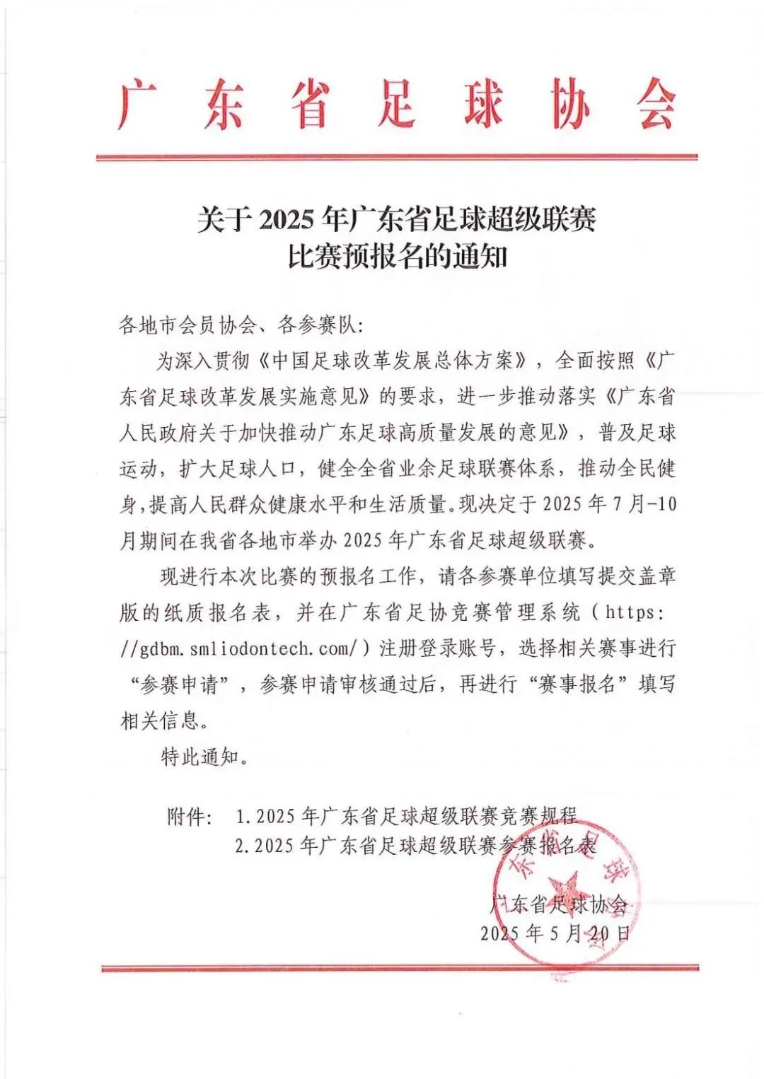 “苏超”爆火出圈之后,其他省市的办赛举动开始受到关注。近日,一则《关于2025年广东省足球超级联赛比赛预报名的通知》在网上迅速流传,“粤超”话题受到关注。